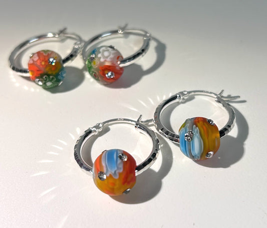 Seaside Radiance Earrings – Millefiori Glass, Sterling Silver Hoop Earrings (Limited Edition)