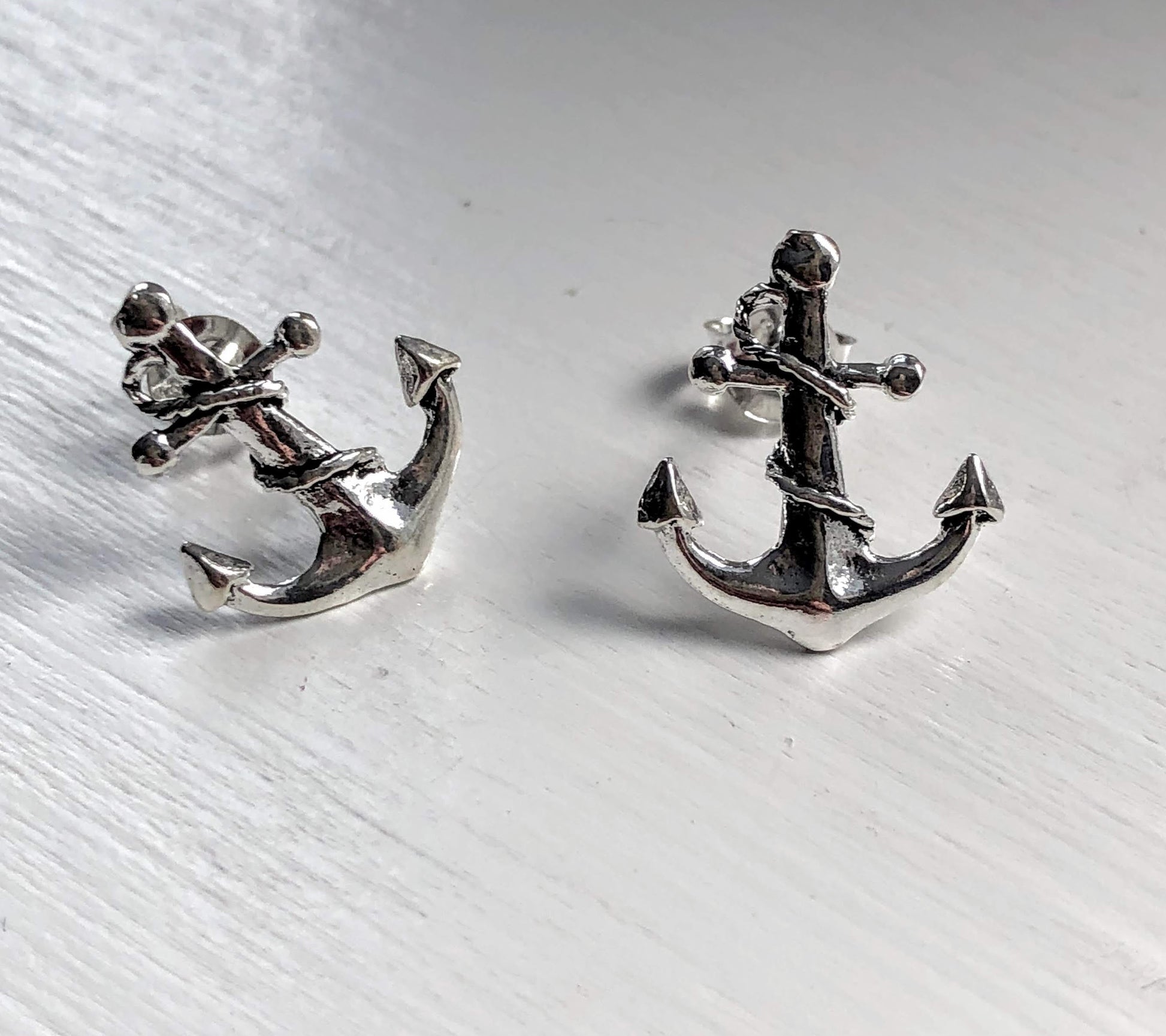 The perfect sized Anchor stud earrings. Beautifully detailed sterling silver Anchors are a perfect replica complete with the rope, Ahoy!