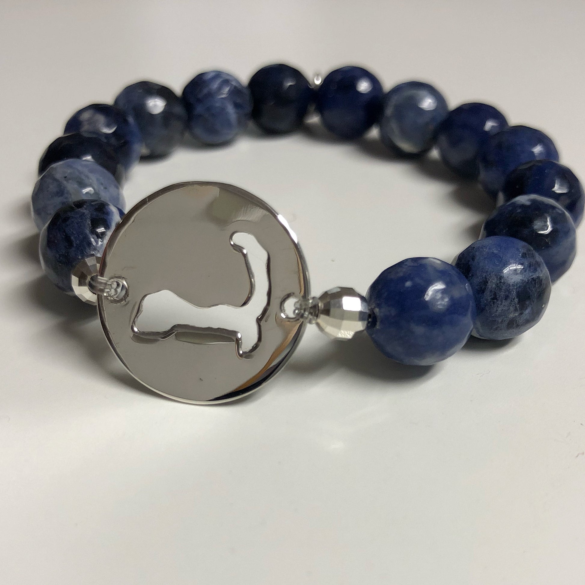 Our beautifully detailed, solid Sterling Silver Cape Cod Disc cut out is hand strung with stunning Sodalite gemstone beads and sparkly Sterling Silver accents. Strong and stretchy for easy on and off daily wear. A beautiful bracelet to add to any Cape Cod jewelry collection. One size fits most
