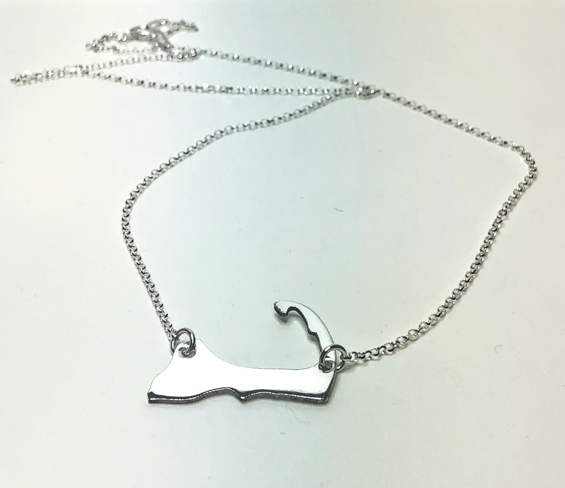 Show your love of Cape Cod! Our beautiful Cape Cod Map necklace is handcrafted in solid sterling silver. The Cape Cod silhouette dangles from a pretty sterling silver sparkle chain and is available in three lengths. The perfect size to wear daily.