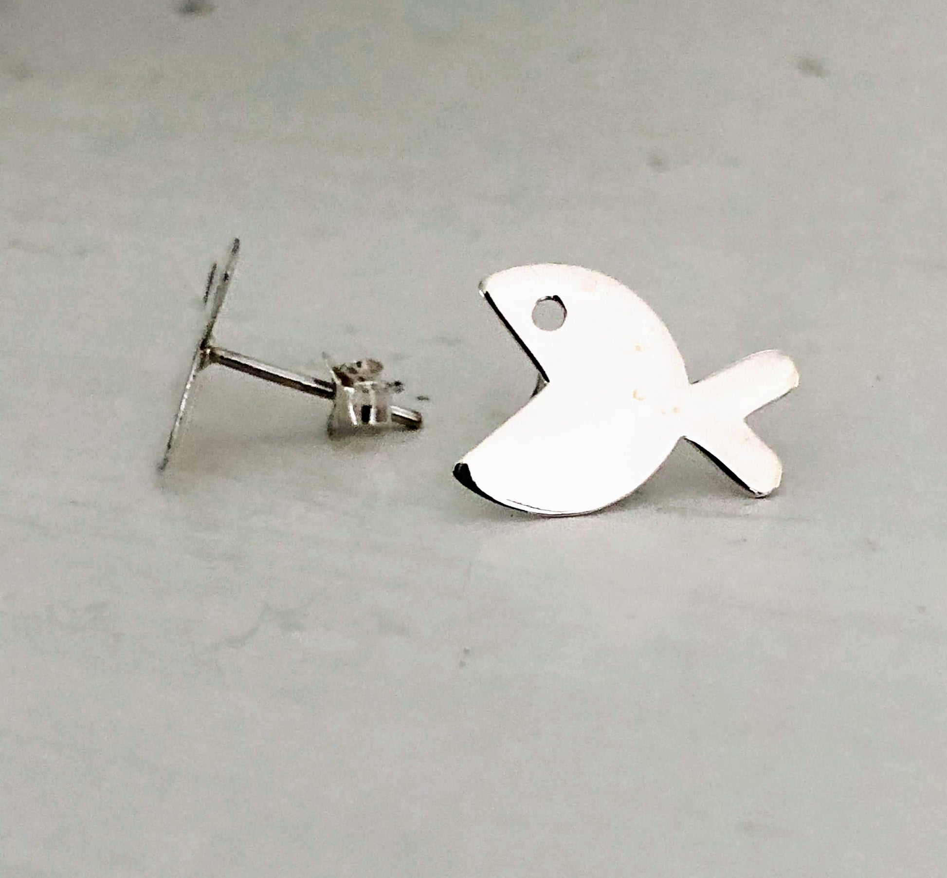 Super cute sterling silver flat fish stud earring. A playful, comfortable earring for any nautical lover.