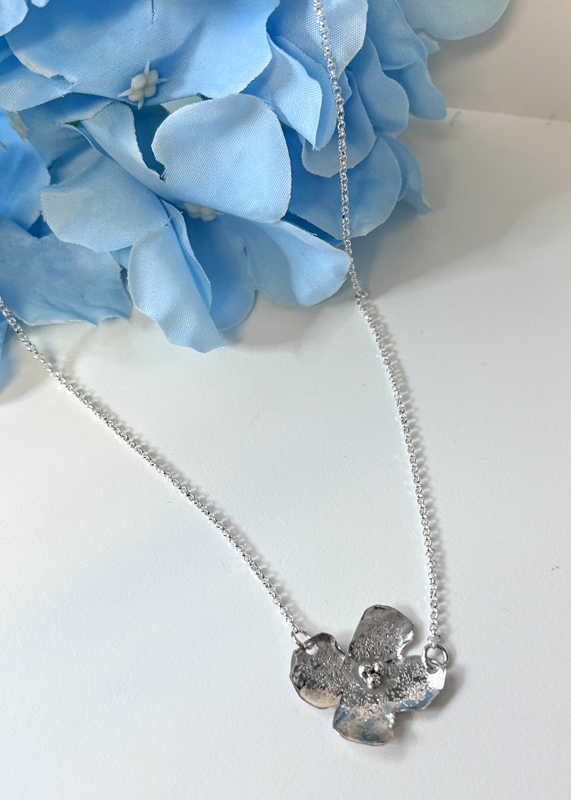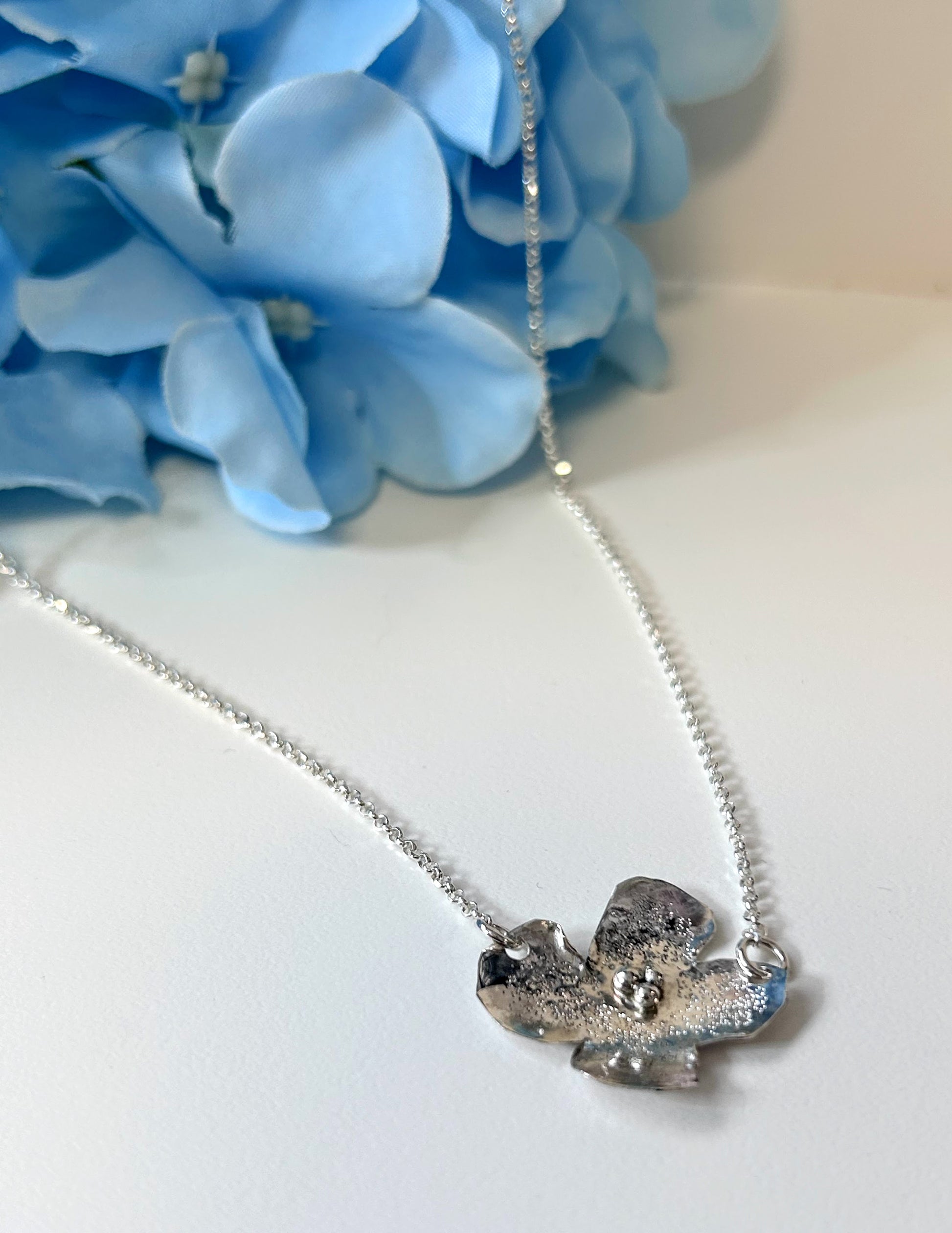 As pretty as a Hydrangea blossom can be, our sweet one of a kind Hydrangea flower is handcrafted in solid sterling silver, finished to perfection and paired with our popular sparkle chain. A piece you'll want to wear daily! Perfect for any Hydrangea girl!