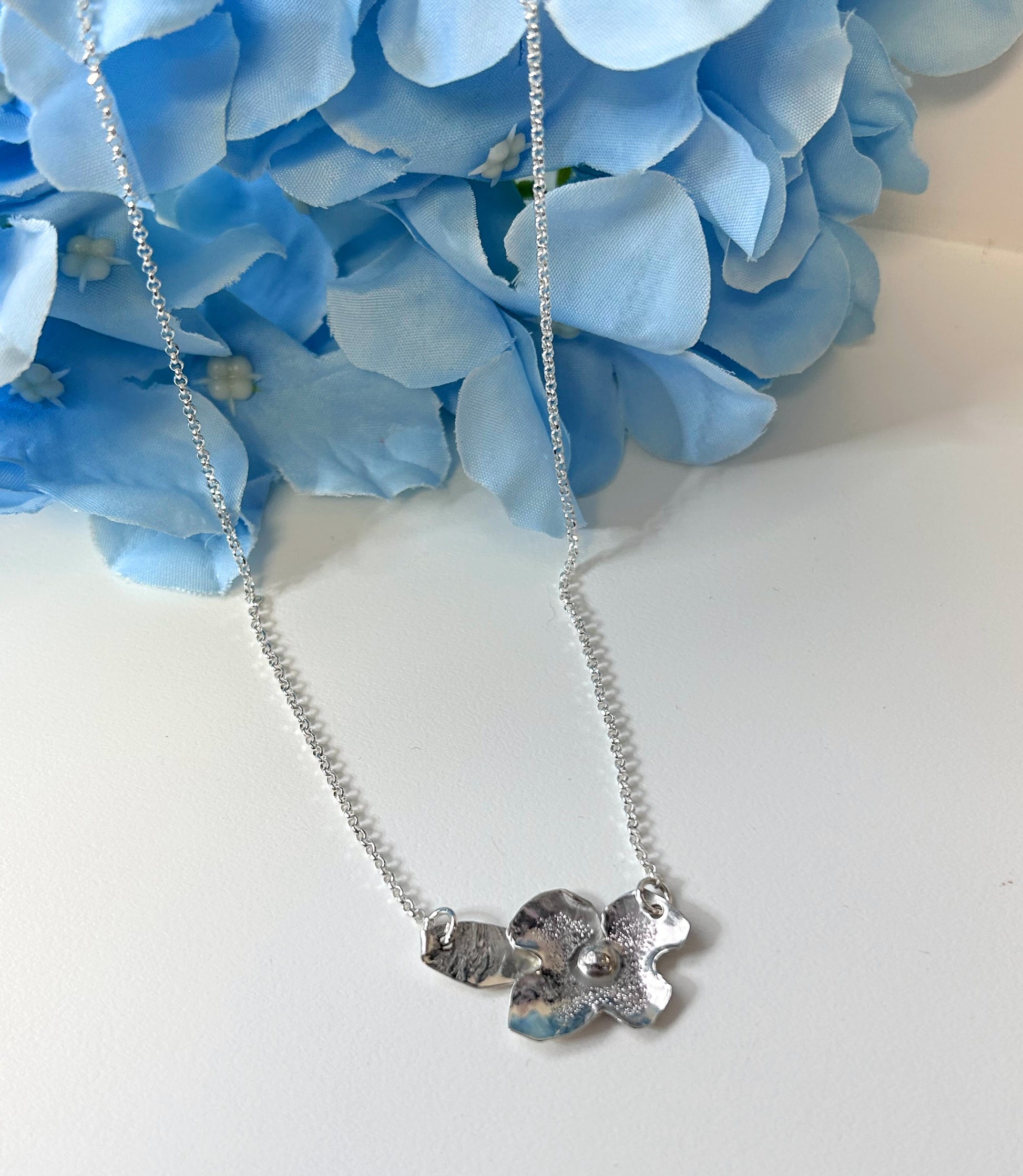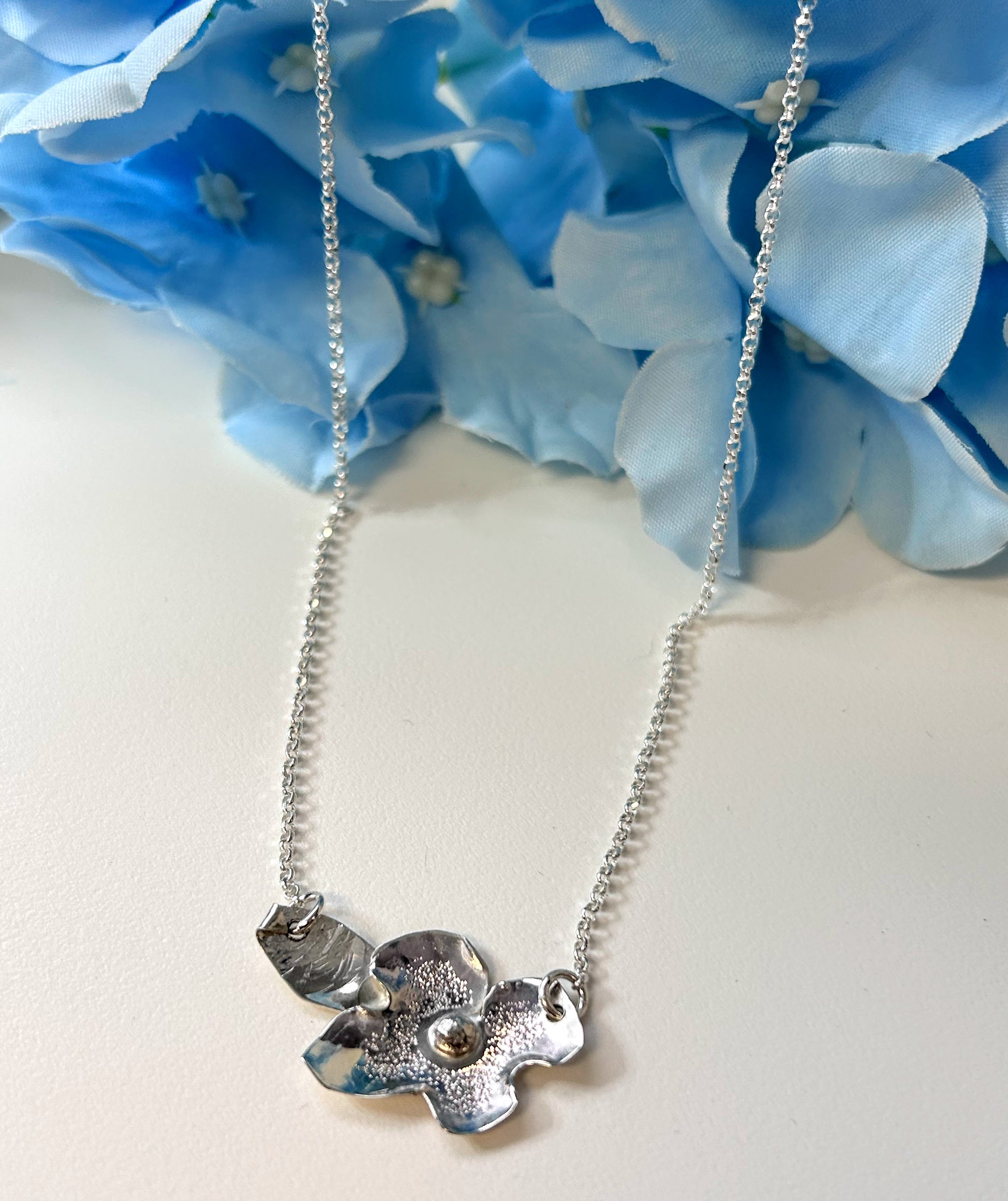 As pretty as a Hydrangea blossom can be, our sweet one of a kind Hydrangea flower leaf combo is handcrafted in solid sterling silver, finished to perfection and paired with our popular sparkle chain. A piece you'll want to wear daily! Perfect for any Hydrangea girl!