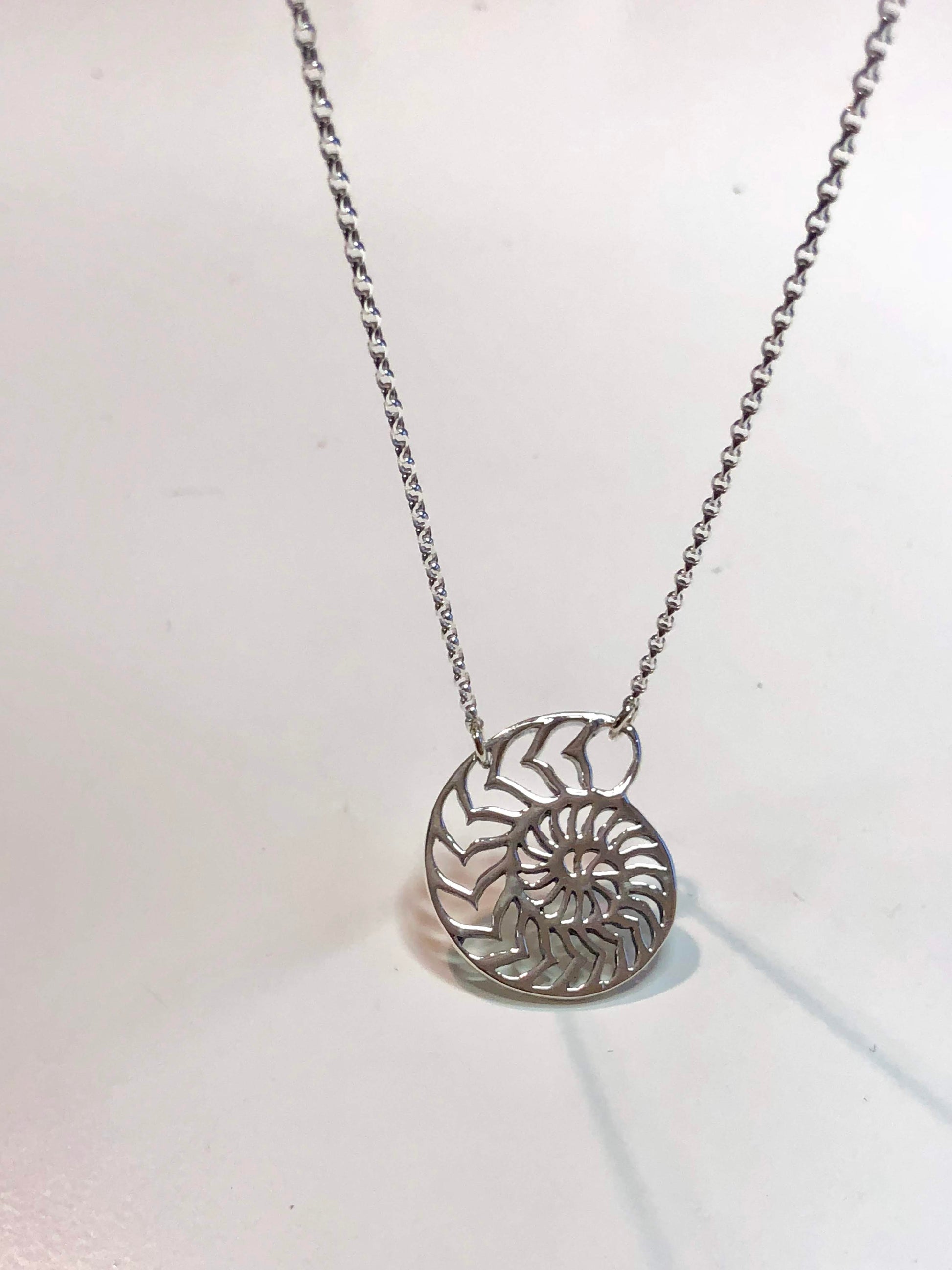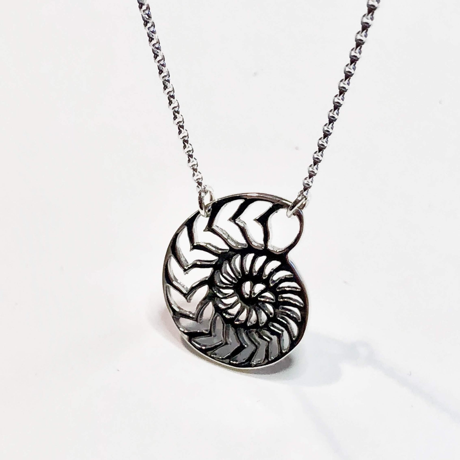 Beautifully detailed Nautilus Shell Necklace in solid sterling silver. Our beachy and classically styled necklace is perfect for any ocean lover! Accented with a sparkly sterling silver chain and meant to wear everyday. Dressed up or casual, this piece is sure to make any beach lover happy!