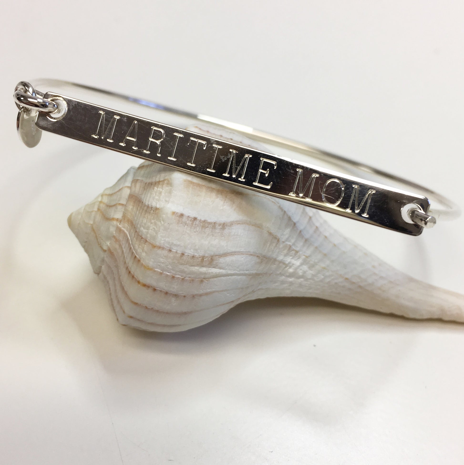 Beach Booty! Our fun custom engraved, wear to the beach, on the boat or anytime jewelry collection. Engrave your favorite Vacay destination, beach name, zip code, initials, anything that is special to you. Comfortable and customizable, our handcrafted solid Sterling Silver, custom engraved sterling silver bangle is polished to perfection and sized* to fit most ladies wrists. You name it, We'll Tag it!