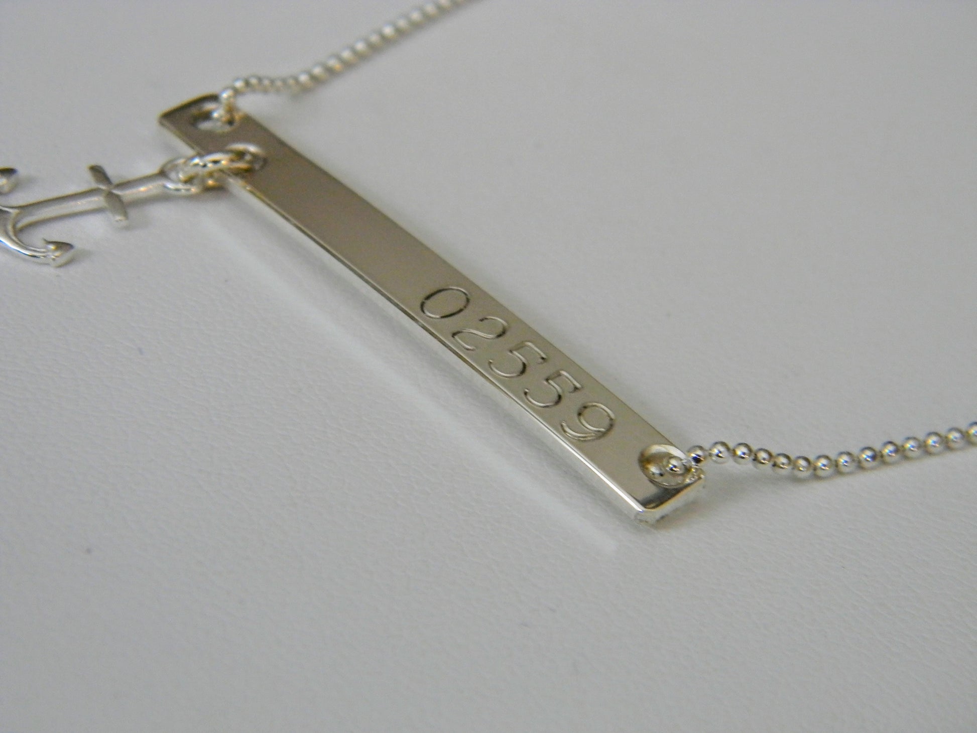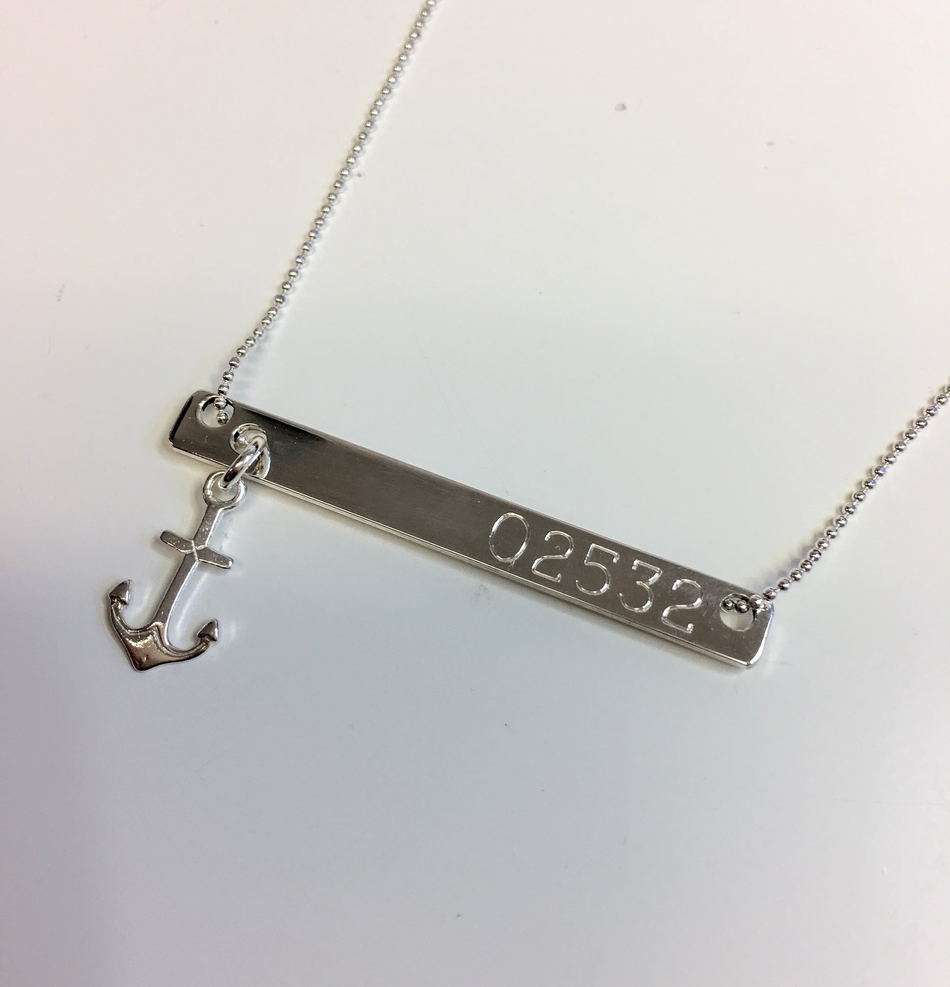 Beach Booty! Our fun custom engraved, wear to the beach, on the boat or anytime jewelry collection. Engrave your favorite Vacay destination, beach name, zip code, initials, anything that is special to you. Comfortable, customizable and handcrafted in solid Sterling Silver with a pretty sterling silver sparkle chain. Our Beach Booty Tag necklace is perfect for you or a unique gift. You design it, we'll Tag it. Accented with a Sterling Silver Anchor for the perfect pop of Nautical!