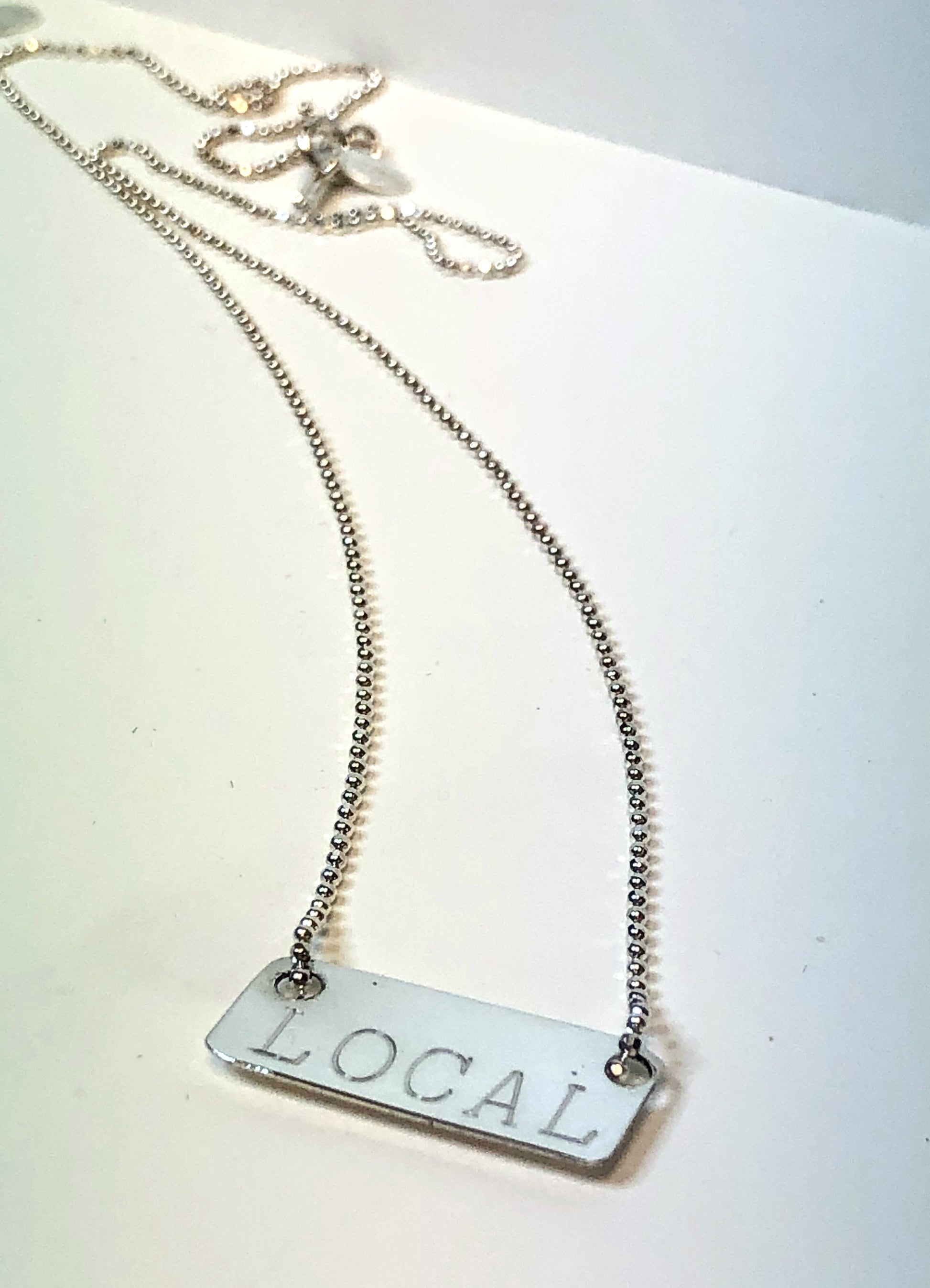 Handcrafted in solid Sterling Silver, our Beach Booty Tag Necklace is hand engraved with your special Zip Code, Area Code or a short name or word and accented with a sterling silver sparkle chain. Just the right rectangle for everyday wear and the perfect reminder of the perfect place!
