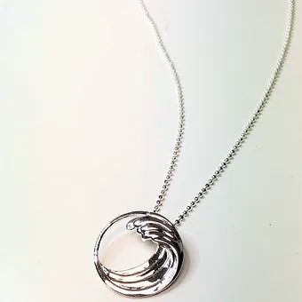 A pretty as an Ocean Wave can be, beautiful lines create the perfect curl in our ocean wave pendant. Crafted in sterling silver with a hidden bail this pretty pendant comes floating on a sterling silver sparkle chain. Perfect for any beach girl!