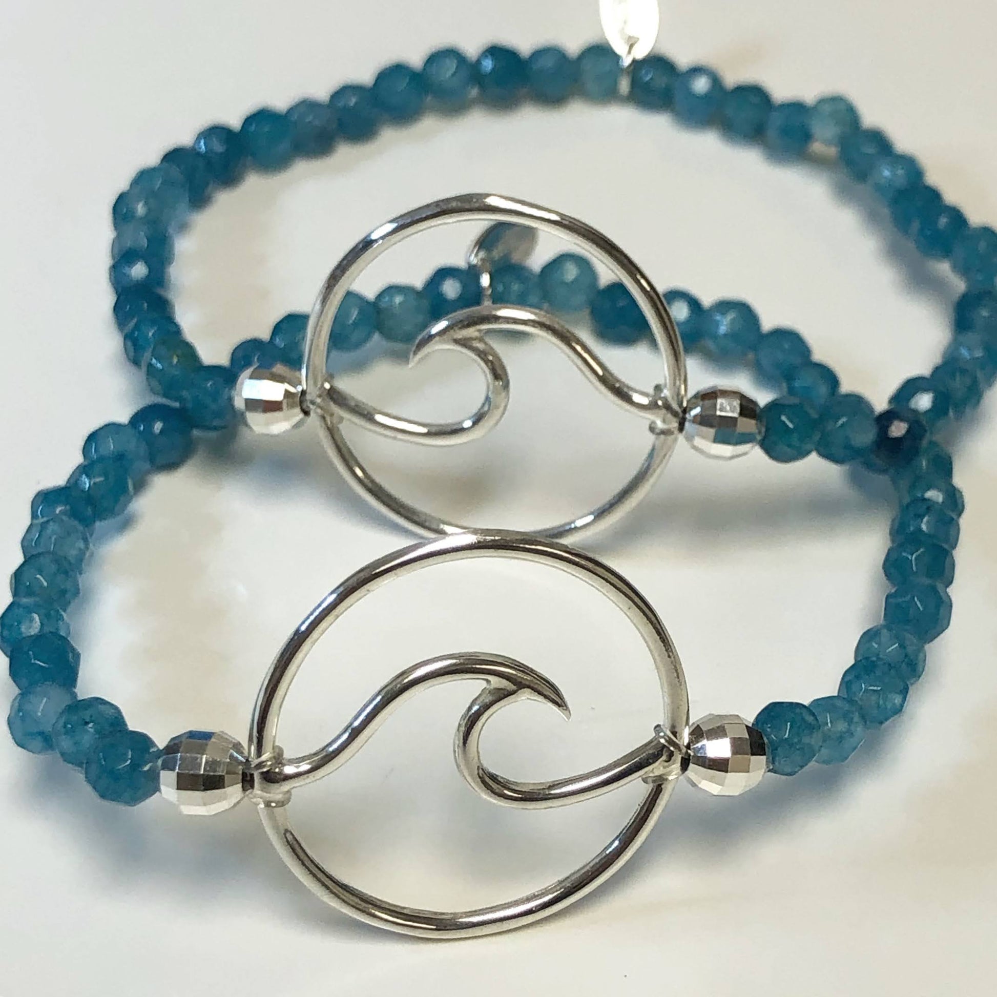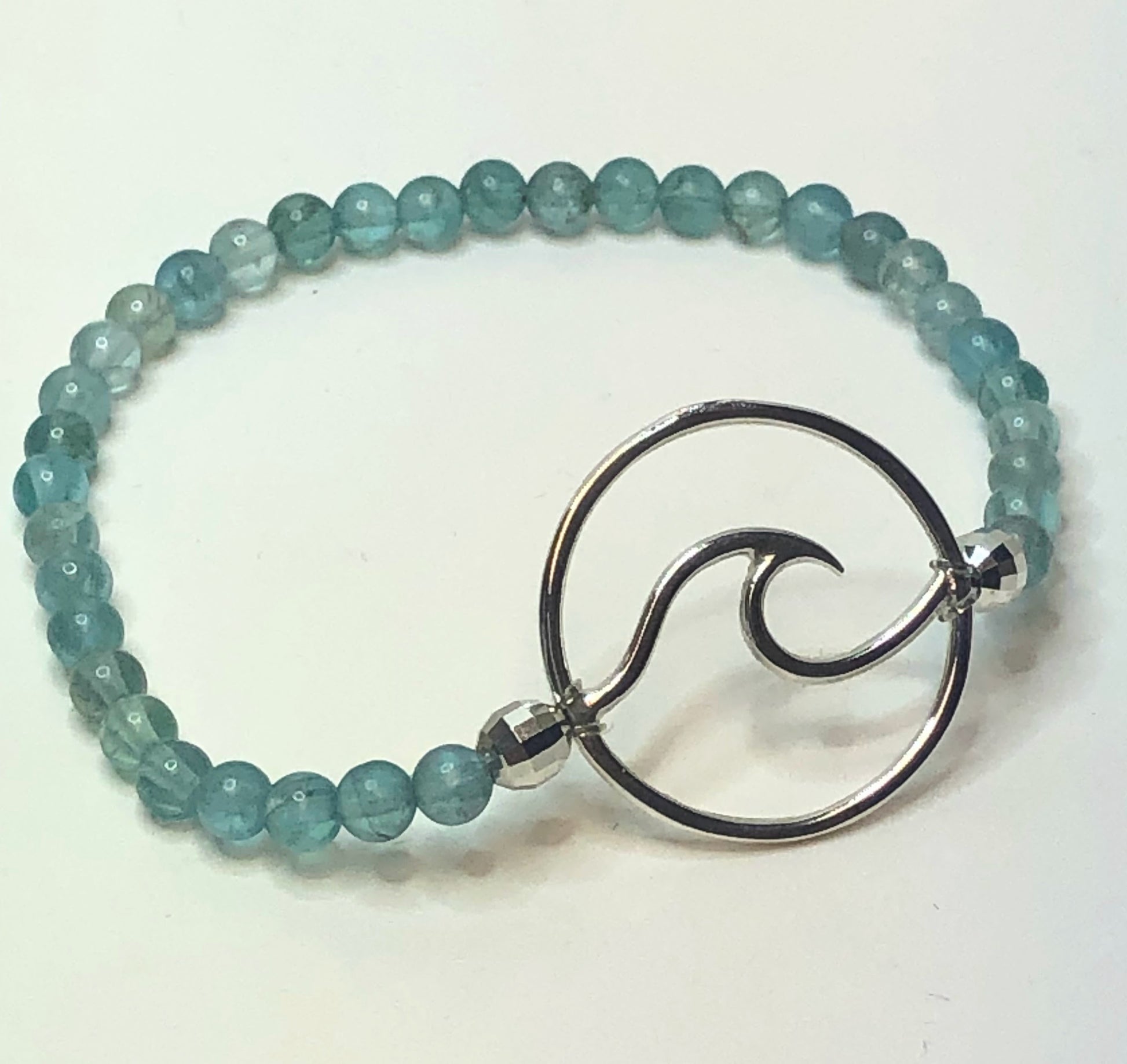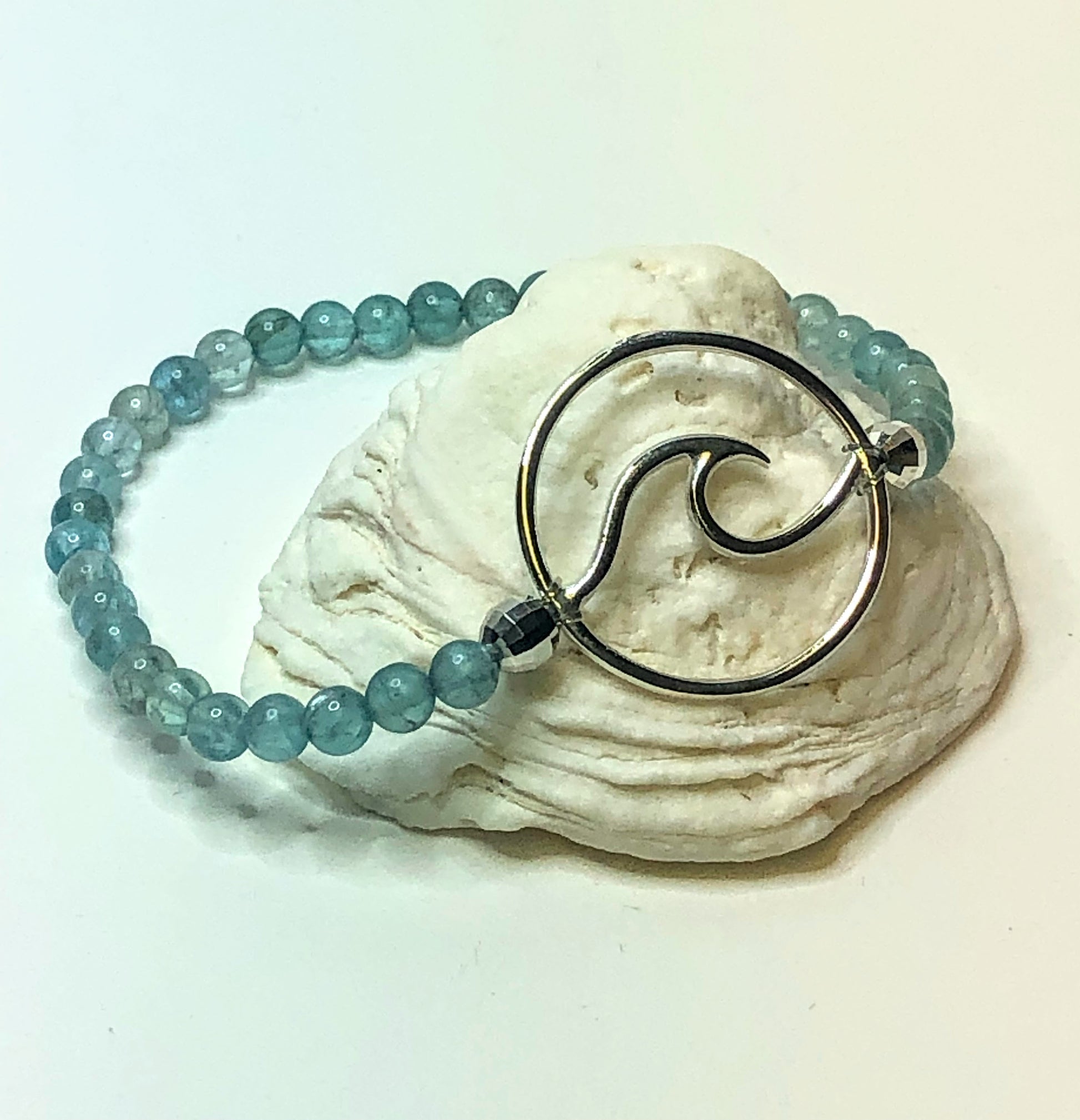Our beautiful Sterling Silver Wave is paired with blue or seafoam green Apatite gemstone beads and hand strung on SUPER-STRONG stretch cord for easy on/off daily wear. Catch the wave and add this pretty piece to your nautical collection! One size fits most
